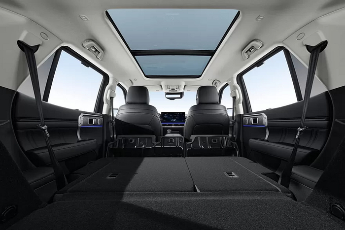 Несмотря на внушительные размеры, Tank 400 остается строго пятиместным автомобилем. В салоне присутствуют отдельные экраны приборной панели и мультимедийной системы, а также круглые боковые дефлекторы обдува. Объем багажника составляет 566 литров, но при сложенных втором ряду кресел этот показатель увеличивается до 1830 литров.