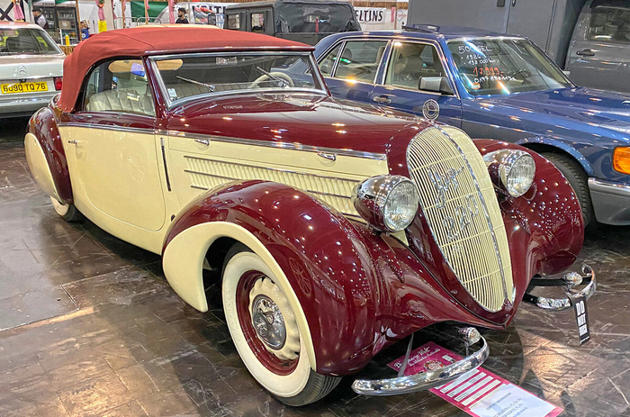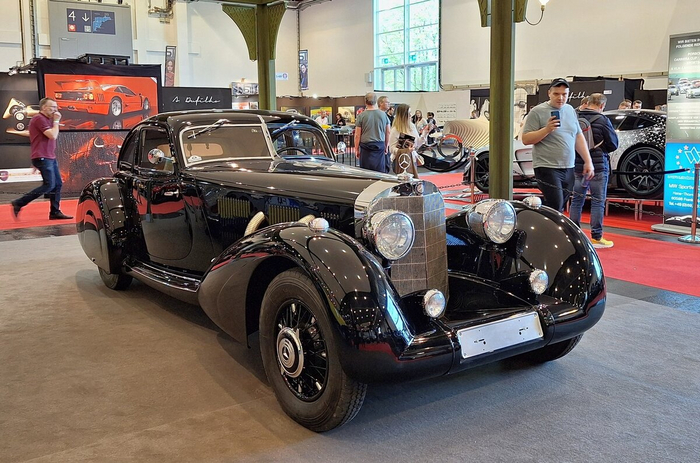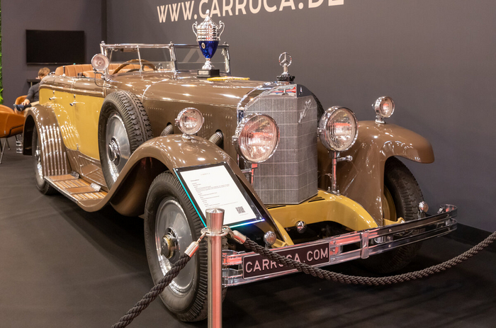 Громадный Mercedes-Benz 630 K 1928 года выпуска с роскошным открытым кузовом работы парижского автомобильного кутюрье Якова Савчика. Большая рядная «шестёрка» объёмом 6,3 литра имела довольно прогрессивную конструкцию с верхним расположением распредвала и в обычных условиях развивала 100 л.с., но включение приводного компрессора позволяло повысить отдачу до 140 л.с. Необычная по нашим временам деталь: при правом расположении руля рычаг четырёхступенчатой коробки передач установлен тоже справа.