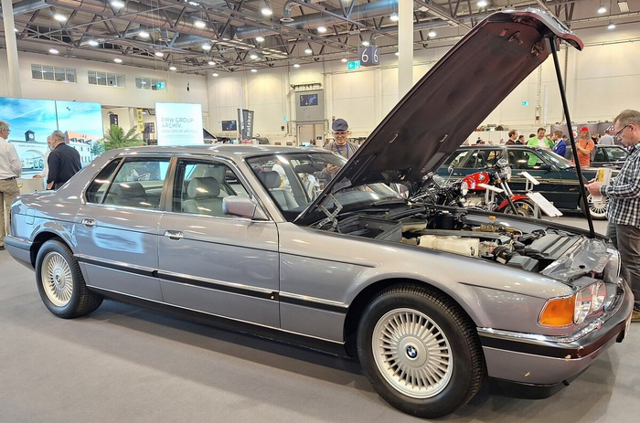 На наш вкус, это самый интересный экспонат всей выставки: доселе нигде не демонстрировавшийся [прототип седана BMW](https://motor.ru/news/bmw-v16-05-04-2024.htm) с двигателем V16! Прежде публике показывали только более раннюю опытную машину, собранную в кузове «семёрки» E32. Автомобиль под условным названием «Goldfisch» («Золотая рыбка») разрабатывали в конце 80-х: в модельной линейке он должен был встать на ступеньку выше седьмой серии. Внешность автомобиля разом напоминает «семёрки» двух поколений — можно увидеть как черты кузова E32, так и более позднего E38. Опытный экземпляр собран в 1990 году, его кузов изготовлен из алюминия в одном из итальянских ателье.