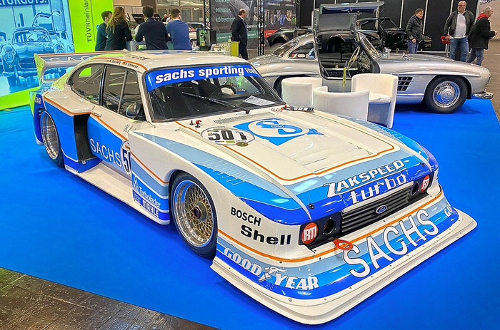 Одна из легенд кольцевой «Группы 5» конца 70-х — крылатый Ford Capri Turbo команды Zakspeed. В основе болида лежит пространственная рама из стальных трубок, на которой смонтировано оригинальное углепластиковое оперение с элементами кузова от серийной машины. Под капотом — четырёхцилиндровый турбомотор Ford-Cosworth BDA: поначалу его объёмом составлял 1,4 литра, но с 1980 года команда нарастила его до 1,7 литра, перейдя в старший Дивизион 1. И если «маленький» мотор выдавал около 460 сил, то «большой» — уже в районе 600 сил. На рубеже семидесятых и восьмидесятых Zakspeed была официальной командой марки Ford в немецком чемпионате DRM. В 1981 году Клаус Людвиг за рулём Capri стал чемпионом.