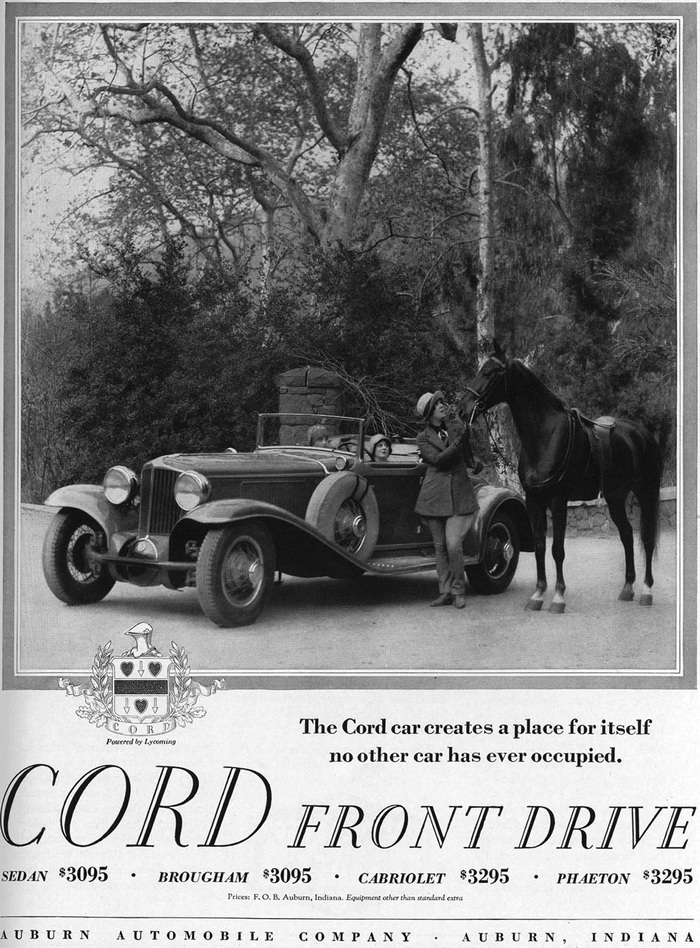 Модная тема овладевала миром. Из 244 690 приобретённых в 1936 году немцами легковых автомобилей передние ведущие колёса имели около 55 тысяч. Перечень марок впечатляет. Это прежде всего DKW, стоявшая в Германии на втором месте по производству автомобилей, после Opel. Дальше можно загибать пальцы: Adler, Audi, Ihle, NAG-Voran, Stoewer, Tempo, Tornax. В соперничающей Франции не отставали Citroen и Rosengart. В Чехословакии пользовались популярностью Aero и Jawa. В Великобритании пробовал силы Alvis, в Бельгии – Imperia. Сенсацией Нью-Йоркского автосалона в ноябре 1935 года стал футуристический Cord 810 – первый в мире автомобиль, у которого фары прятались в крылья.