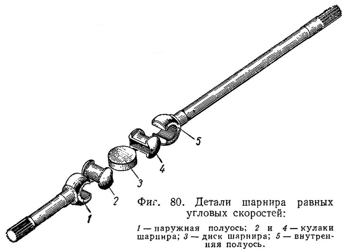 В шарнире нью-йоркца Карла Вейса усилие передают всего 4 шарика, а не шесть, как у Шеппы. Да и в целом деталей меньше. Но простота эта кажущаяся. Знаменитый конструктор вездеходов Виталий Андреевич Грачёв вспоминал, как на Горьковском автозаводе в 1939 году разгадывали конфигурацию канавок, по которым перекатываются эти шарики, поскольку фирма Bendix отказалась продать в СССР патент на шарнир Weiss. Оказалось, каждая канавка имеет форму тора, осевые плоскости которых пересекаются не совсем под прямым углом, а под углом 90 град. 44 мин. Да и профиль канавок не радиусный, а арочный, то есть, шарики перемещаются внатяг. Разгадали — и назло американцам освоили самостоятельное изготовление кулаков «вейссов» на зуборезных станках «Глиссон», закупленных ещё под «полуторку». Эти шарниры нашли применение на целом ряде наших вездеходов: ГАЗ-61, ГАЗ-64, ГАЗ-67, ГАЗ-62, ГАЗ-63, ГАЗ-66, «уазиках». Ну а полноприводные автомобили заслуживают отдельного рассказа...
