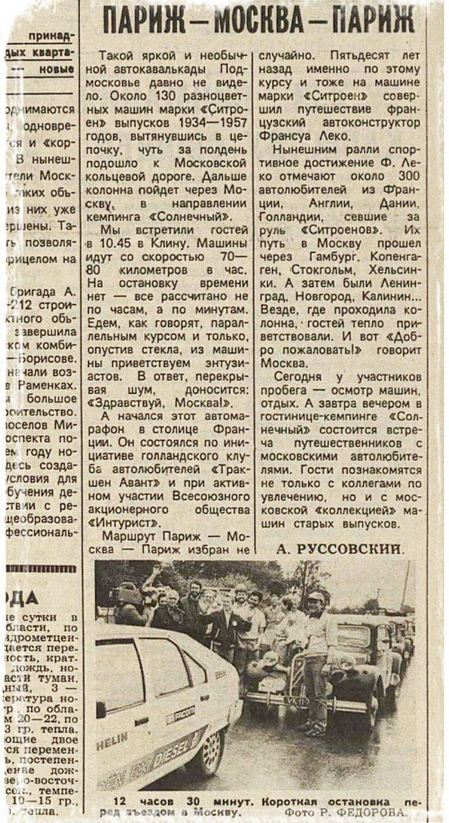 Доказательством невероятной надёжности первого французского массового переднеприводного автомобиля Citroen Traction Avant стал приезд в Москву в июле 1984 года огромной колонны этих автомобилей. Так европейские клубы владельцев этой модели отметили 50‑летие памятного пробега Франсуа Леко на Citroen 11CV Traction Avant по маршруту Париж — Москва — Париж. А всего за 1934 год мосье Леко накатал на своём «ситроэне» 400 000 км! Модель (конструктор Андре Лефевр) выпускали с 1934 по 1957 год (с перерывом на войну), изготовив около 760 тысяч.
