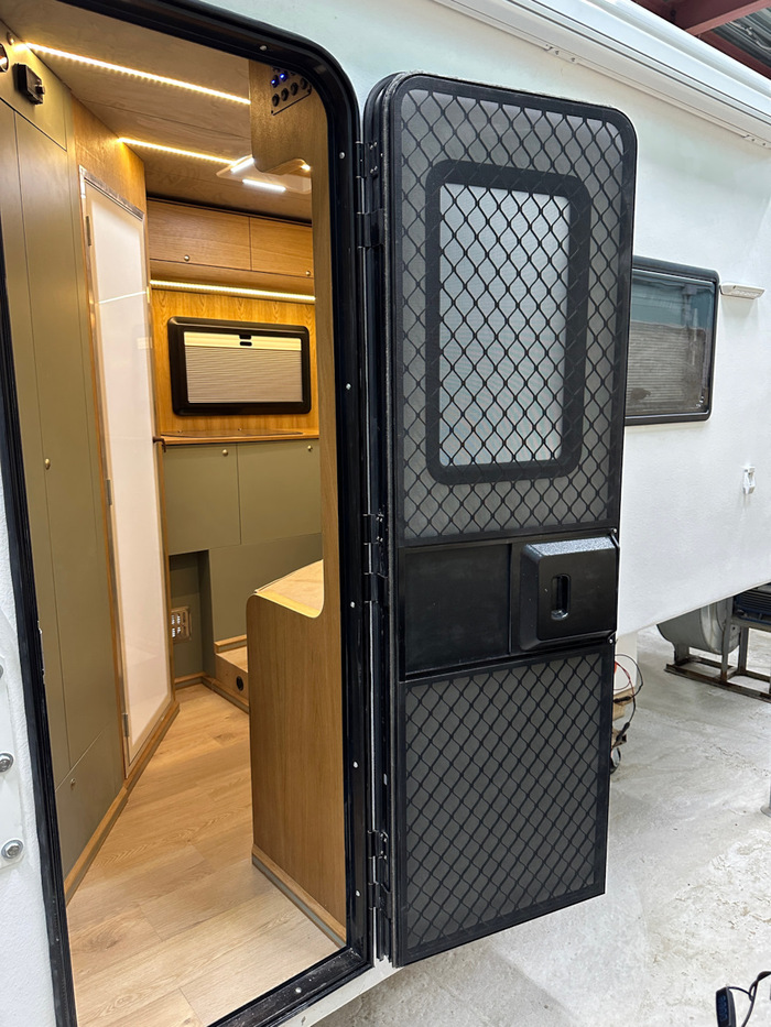 Двери ставим разные. В этот раз американский тип — с двумя отдельными дверями. Обычной и москитной.