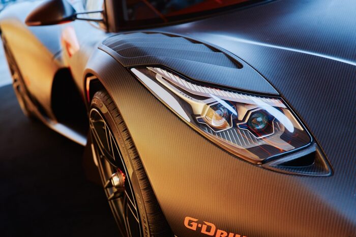 Стеклопластиковый кузов-монокок представлял собой лаконичную оболочку с огромным круглым лобовым стеклом. При этом пространства в салоне хватало лишь для двоих человек, размещались они на своих местах в позиции полулежа. А еще Колани сделал чрезмерно выдающиеся колесные арки открытыми, а громадные колеса «обул» во внедорожные шины с большим протектором. Футуристичная оптика и зауженная корма гармонично завершали сформировавшийся образ.