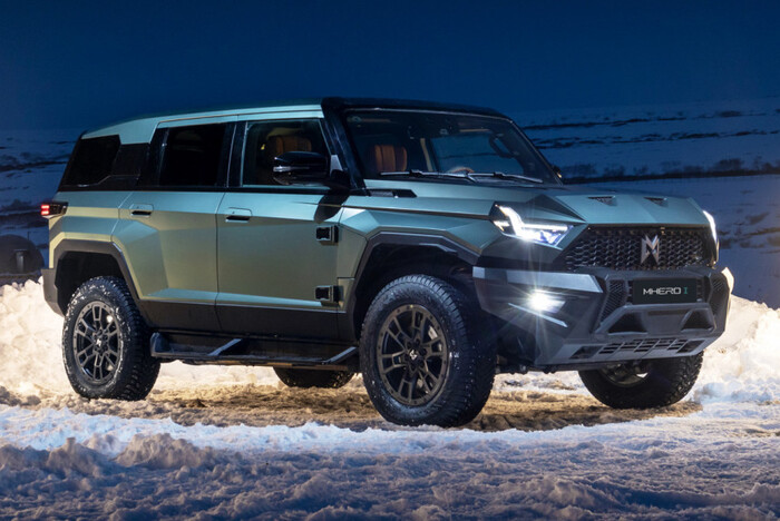 Это крупный рамный внедорожник: длина 5066 мм, ширина 1934 мм, высота 2080 мм, колесная база 2950 мм. Он имеет полноуправляемое шасси с режимом Crab Mode (движение наискосок) и радиусом разворота 5,1 м: задние колеса могут поворачиваться на угол до 10,6 градуса. M-Hero I оснащен независимой пневматической подвеской и 20-дюймовыми колесами, дорожный просвет варьируется от 221 мм до 326 мм в режиме Off-Road, угол въезда — от 31° до 36,8°, а угол съезда — от 31° до 37,5°. Максимальная глубина преодолеваемого брода — 900 мм.