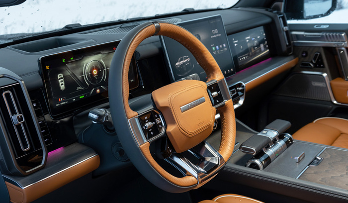 Совокупная отдача силовой установки — 816 л.с. и 1050 Нм. Внедорожник снаряженной массой 3160 кг может разогнаться до 100 км/ч за 6 с, максимальная скорость 191 км/ч. Тяговой батареи емкостью 65 кВт·ч хватает на 175 км пробега (по циклу WLTP), а с дополнительной помощью бензинового удлинителя хода и полным 84-литровым баком дальнобойность возрастает до 750 км. Быстрая подзарядка от терминала постоянного тока с 30 до 80% займет 38 минут, а за шесть часов можно восполнить всю емкость батареи от зарядки переменного тока.