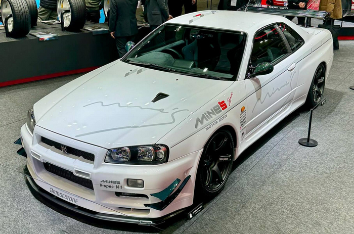 Не можем не отметить и вот этот Nissan Skyline GT-R (R34) в редком исполнении V-Spec N1. Это не просто кипенно-белый «скай» в декалях легендарной тюнинг-мастерской Mine's Sport, а очень качественный рестомод фирмы Built by Legends. Компанию организовали в 2018 году единомышленники Масахару Кудзи и Катсу Такахаши. Все их машины делаются по близкому рецепту. Кузов разбирают до голого металла и восстанавливают — у «скайлайнов» масса проблем с коррозией. Этим занимается известный Garage Yoshida, наладивший производство новых деталей — в частности, опорных стаканов передней подвески изменённой конструкции (родные детали гниют даже на ухоженных машинах). Часть кузовных деталей заменяют углепластиковыми копиями, но внешне стараются сохранить сдержанный стиль: например, на этой машине углепластиковый бампер и капот никак не отличаются внешне от штатных. Салон обшивают высококачественной искусственной замшей Ultrasuede. Под капотом — зона ответственности мастеров фирмы Mine's: установлен построенный ими двигатель RB28 сравнительно умеренной мощности (около 600 л.с.). Такая машина «под ключ» стоит около полумиллиона долларов.