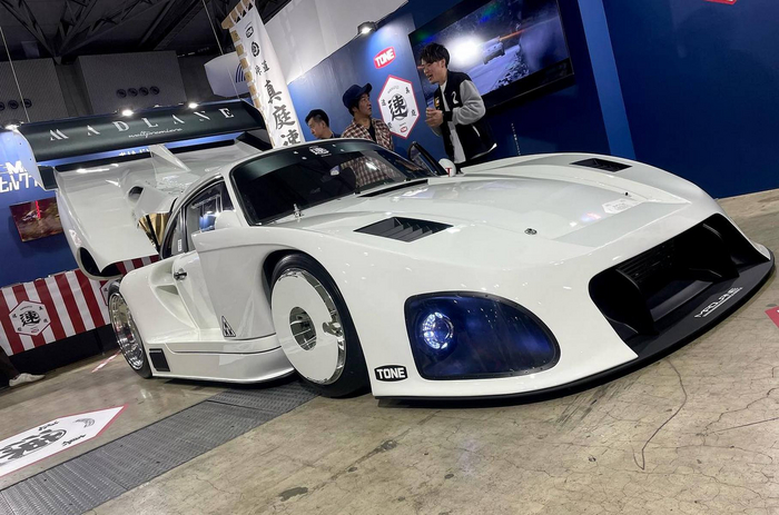 В Японии любят и умеют готовить не только свою технику, но и западную! Одна из самых впечатляющих машин этой выставки — вот этот Porsche 935 ML, построенный в мастерской Madlane. Её владелец Казуки Охаши вдохновлялся «силуэтами» Kremer-Porsche группы 5 конца 70-х годов. От cерийного Porsche 911 осталась только крыша, дверные проёмы и фрагмент передка — всё это установили на сварную пространственную раму. Подвески заимствованы от Porsche 993, но сзади внедрены толкающие штанги с «качалками», амортизаторы перенесены на раму; стабилизаторы поперечной устойчивости регулируются из салона. «Оппозит» воздушного охлаждения объёмом 3,8 литра снабжён двумя турбинами K27. Секвентальная коробкой передач Holinger — с пневматической системой переключения с подрулевыми лепестками.