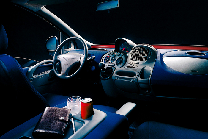 Даже это не мешало «Мультипле» выглядеть вызывающе на фоне принятых в автомобильной моде девяностых фасонов и форм. Визуальный диссонанс между нижней частью кузова с максимально приближенной к дороге поясной линией и огромной зоной остекления сам Джиолито называл «концепция кафетерия». Ты как бы сидишь за столиком в кафе, любуясь окружающими со всех сторон видами.