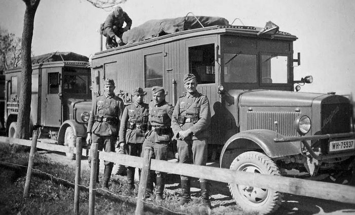 Идея стандартизации военных автомобилей была не нова. Но воплотить ее поначалу удавалось только в кузовах. На снимке — связисты 40‑го полка 27‑й дивизии вермахта. Впереди — полуторка Magirus M206 (6x4), а сзади, вероятно, однотипный Büssing-NAG G 31. Обе модели созданы задолго до «плана Шелля».