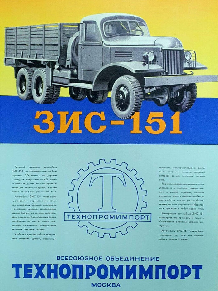 Видимо, появление в 1946 году ЗИС-151 с двухскатной задней ошиновкой следует объяснять не подражательством, узостью мышления (или трусостью) конструкторов, по сути, скопировавших стандартный американский 2,5‑тонный грузовик 6х6, а какой-то иной причиной. Например, вынужденной экономической необходимостью обеспечить унификацию с народнохозяйственным грузовиком ЗИС-150. Или отсутствием в тот момент шин подходящей грузоподъемности под параметры трехосного односкатного грузовика-вездехода.