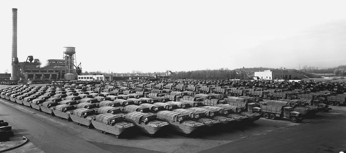 Целиком поставленный по ленд-лизу шинный завод Ford Motor Company, ставший Московским шинным, начал выпуск необходимых типоразмеров покрышек.