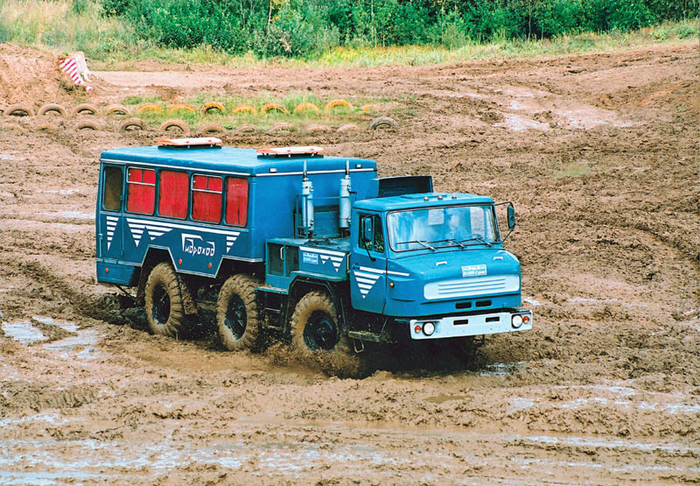 Специалисты КБ компании «НАМИ-Сервис» под руководством главного конструктора Евгения Игнатьевича Прочко, ученика Виталия Андреевича Грачева, с 70-х годов активно работающего с автомобильными гидрообъемными трансмиссиями, реализовали идею гидропривода на трехосном вездеходе, справедливо считая, что на многоосных машинах повышенной проходимости недостатки такой системы будут наименее заметны, а преимущества станут максимально ощутимы.