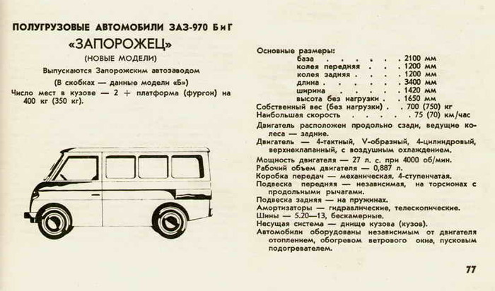 Фургоны ЗАЗ-970Б имели перегородку между салоном и грузовым отсеком. Полезный объем грузового отсека составлял 2,5 куб.м. Грузоподъемность машины составляла 350 кг с водителем и пассажиром. Заднемоторная компоновка 970-го семейства обусловила своеобразие доступа к грузу в кузов фургона - грузовые двери располагались по обеим (!) сторонам кузова. Кроме того, в некоторых источниках есть упоминание о еще одной вспомогательной дверце сзади, над мотором. Стоит также отметить, что в силу V-образной конструкции двигателя, он "горбом" выступал в кузов, отчего грузовая площадка не была ровной по всей площади пола.