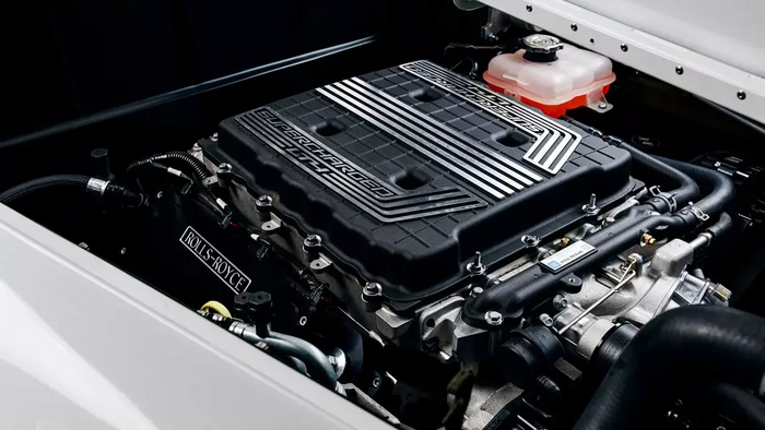 Двигатель получил кастомные клапанные крышки с логотипами Rolls-Royce. Над интерьером работали дизайнеры Sean Smith Designs, идеи которых воплотили в реальность специалисты Gabe’s Custom Interior. Салон отделан тёмно-красной кожей и имеет даже фирменное «звёздное небо», которое привычно для современных Rolls-Royce. Полностью заменены деревянные декоративные панели, а новая панель приборов стилизована под оригинальную.