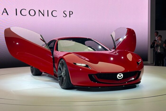 Среди крупных японских брендов Mazda имеет более скромную линейку новинок, но концепт Iconic SP достаточно необычен, чтобы привлечь к себе внимание. Новый компактный спортивный автомобиль SP, похоже, черпает вдохновение в легендарной модели RX-7 с роторным двигателем. Выполненный в великолепном цвете Viola Red, Iconic SP просто поражает воображение.