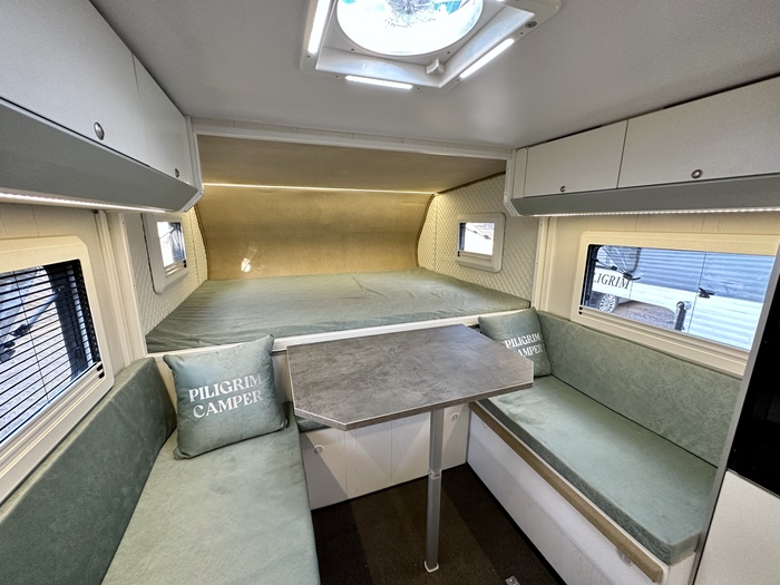 Ну и как следовало ожидать, все будущие заказчики захотели такую компоновку. Сказано - сделано. Piligrim Camper 400LX - жилой модуль для пикапов с кузовом 1,8-2 метра.