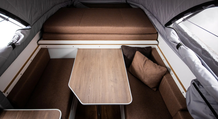 Вес тоже заявлен 500 кг. Что очевидный плюс. Позволяет ли подъемная крыша использовать кемпер в морозы ? Я думаю да. Автономка справится с любыми холодами. Больше вопросов про шумоизоляцию. У меня был модуль похожей конструкции и все хорошо слышно. Кто то говорит в пол голоса и все слышно. А если ночевка застала в дороге и приходится спать у трассы, то вообще как на улице спишь.