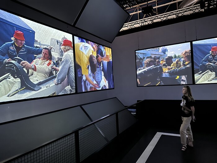 Общее впечатление: восторг, без преувеличения. Идеальным кажется все, атмосфера, аудиогид, который позволяет осматривать экспонаты с нужной скоростью, интерактивные экспонаты, качественный объемный звук. Это не просто выставка, это такой аудиовизуальный опыт, который даёт почувствовать себя зрителем гонки. Создание такого пространства требует отдачу большого количества людей, думаю в Европе это целая ниша — проектирование и создание аудиовизуальных пространств для выставок и музеев.