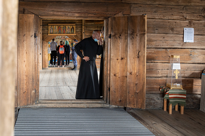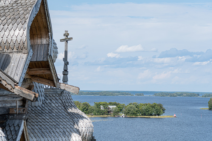Церковь Преображения очень напомнила норвежские ставкирхи с некоторыми отличиями: она гигантская, больше золота, не пахнет дёгтем, и в норвежских церквях не дежурят росгвардейцы. Вообще росгвардейцы притащили на остров себе авто и катаются, не знаю по каким делам, наверное ловят тех, кто летает на коптерах, на острове это запрещено.