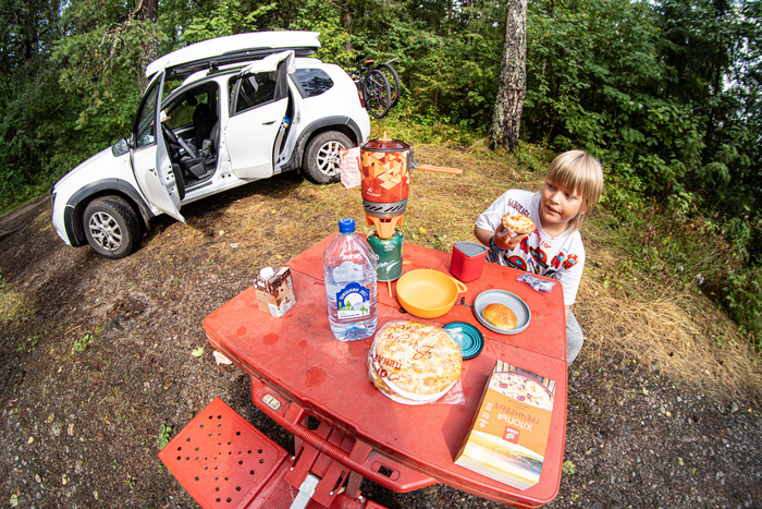 В общем, был какой-то "вседорожник", желание уехать, вИдение направления, перечень мест, куда хочется доехать, запас какой-то еды для поездки, фотоаппарат, камера 360, коптер.