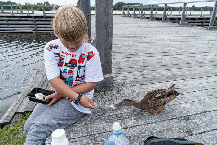 Ручные утки, шунгитовый пляж, запах дерева, все прилизано, камыши рассажены и экспонаты разложены очень эстетично.