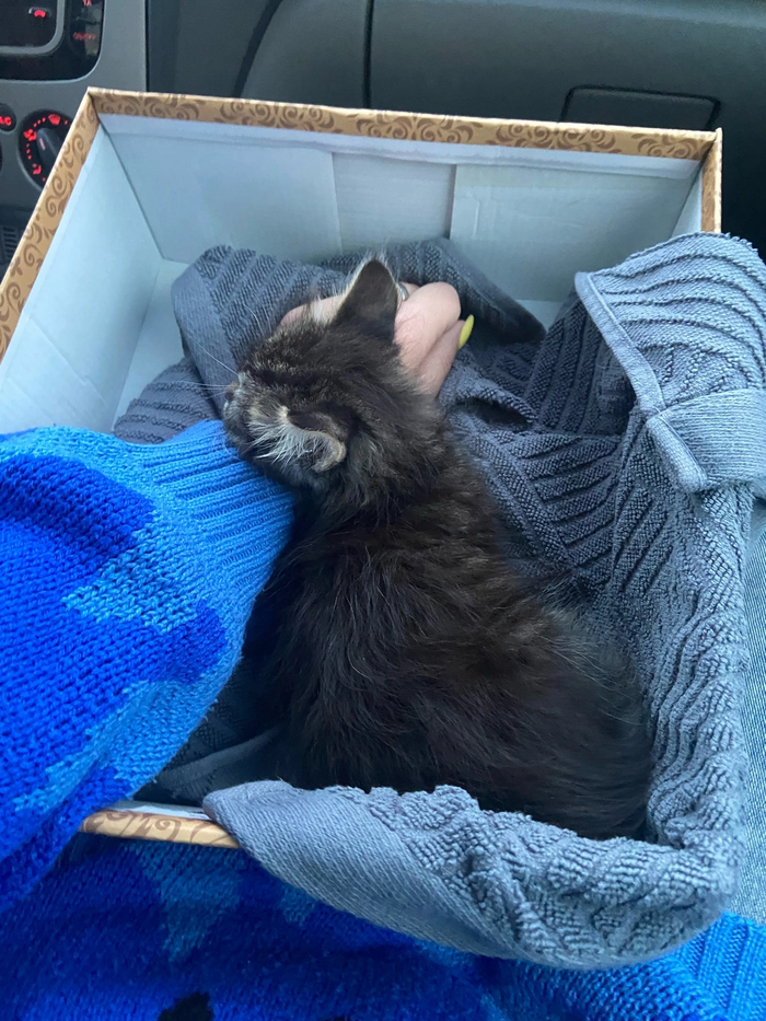 Фото в дороге, пока мне её сестра везла. Она спала всю дорогу.