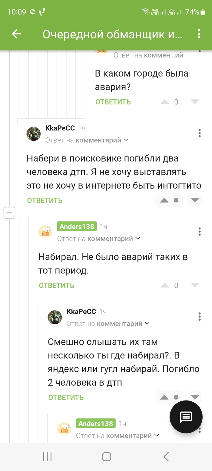 У обмащика @KkaPeCC явно какие-то проблемы с психикой. Решил он мне ещё раз ответить. Сначала предлагает найти новость об аварии, а потом пишет, что новостей не было.