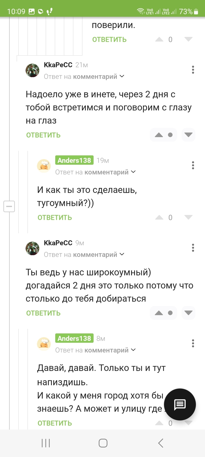 Ну а чуть позже он уже открыто пытается мне угрожать. Будет интересно как он отмажется через 2 дня. Или я реально буду стоять на коленях и просить прощения?