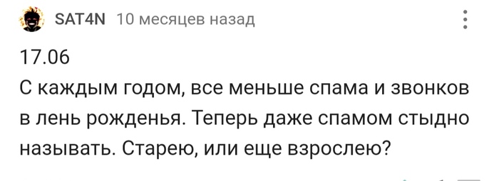 От дня рождения осталось ещё сорок минут. И их я проведу с бокалом вина (первым и последним за этот день), отвечая на поздравления в соцсетях.