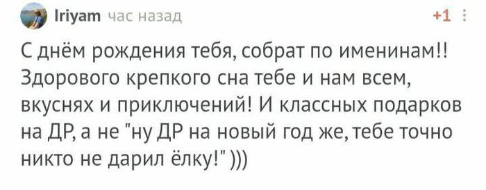 Ну что, пикабушники и пикабушницы? Новый год к нам мчится, скоро всё случится? Где-то сейчас вовсю стучат кухонные ножи, нарезая оливьешечку, где-то кипит рабочий день... Как бы там ни было, но настроение практически у всех наверняка хоть чуть-чуть, но особое. Однако, есть ещё одна группа людей, у которых этот день иногда отдаёт грустью, т.к. из-за всей этой суеты как-то теряется из персональный праздник - день рождения. Уверен, что среди нас таких не мало. Всех их поздравляю, правда желать исполнения всех мечтаний не буду (уж не взыщите), т.к. порой мы все такой треш хотим, что аж жуть, пусть просто ваша жизнь будет полна настоящим счастьем: искренним, светлым, таким, чтобы глядя на вас, другим хотелось улыбнуться.