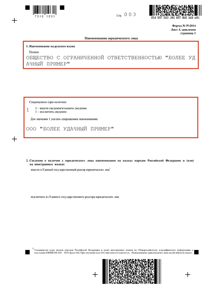 • Если название компании изменилось, на листе А пишите полное и сокращённое название компании, а также название компании на иностранном языке.