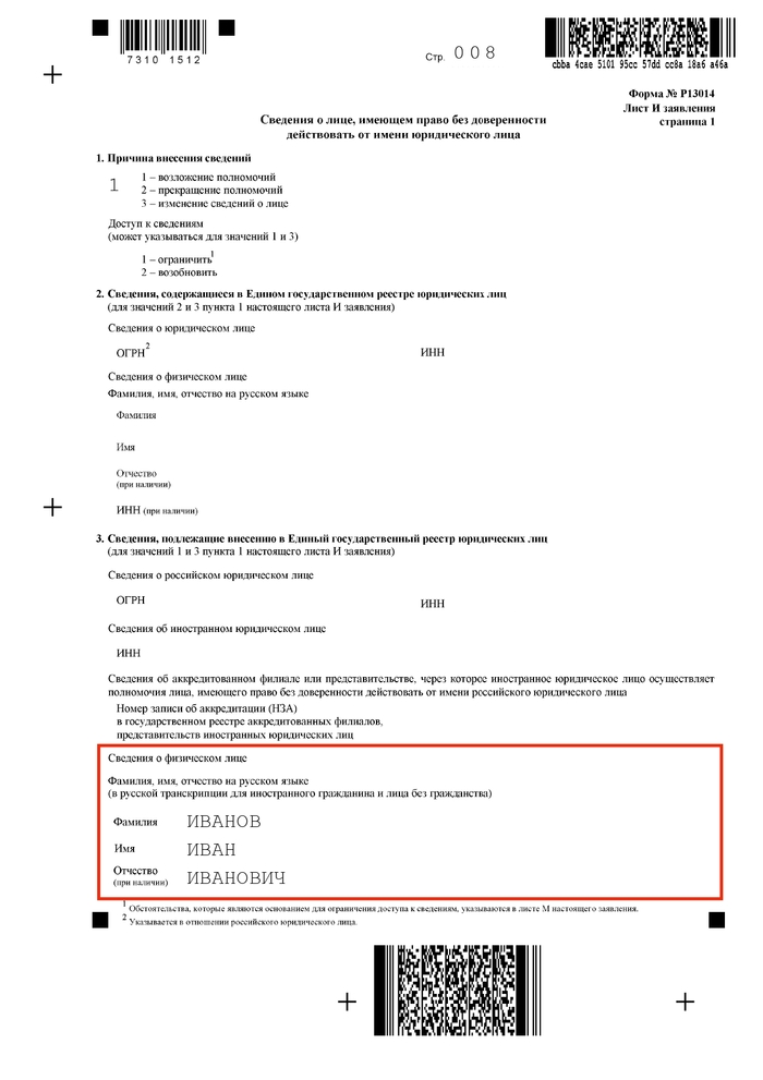 • Заполняйте лист И, если у компании сменился руководитель или у прежнего руководителя изменились документы.
