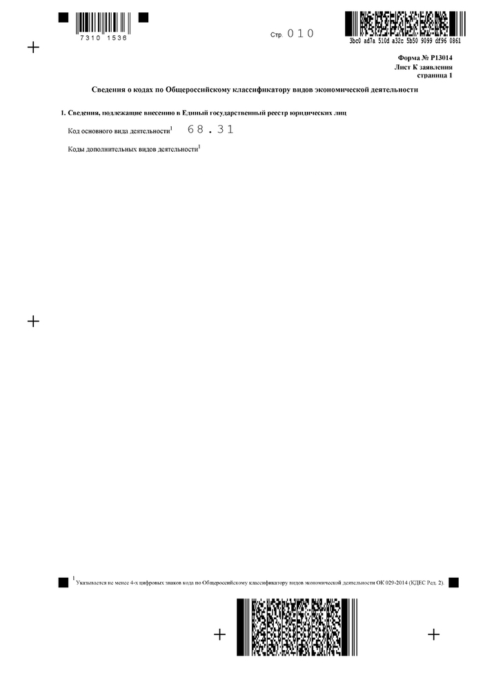 В нашем примере компания больше не будет сдавать в аренду жилые помещения, а попробует себя в покупке и продаже коммерческой недвижимости. Поэтому основным видом деятельности теперь будет 68.31, а прежний код 68.20 перестанет действовать.