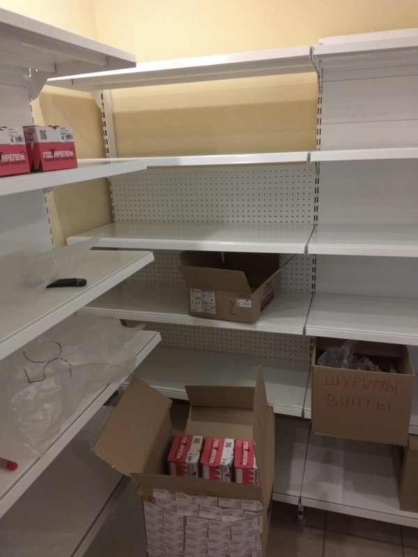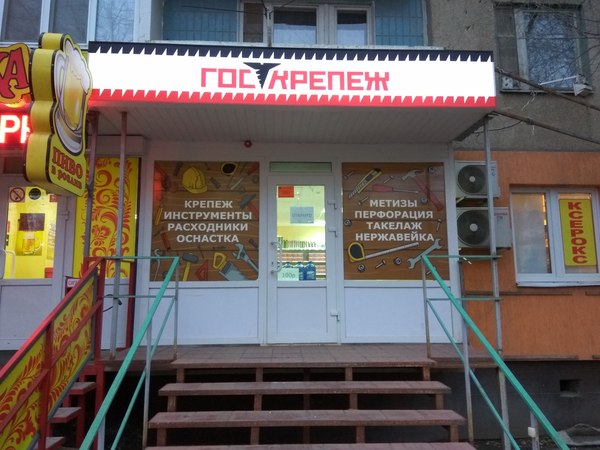 Закипела работа, начали раскладывать/развешивать товар, оприходовать в базу, готовить ценники. Пришло понимание того, что магазин полупустой и смотрится убого. Фото увы нет. После косяков от поставщика мы не могли рискнуть закупиться и ждать еще месяц, пришлось искать местных поставщиков. Нашли пару, ассортимент конечно не весь, но цены более или менее приемлемые. Работаем с ними и сейчас если нужно что-то срочно. Параллельно расширяли ассортимент сопутствующих товаров и основного крепежа. От поставщика должны были бонусом прийти маркетинговые материалы, плакат и пара наклеек. Но не сложилось, то ли маркетолог там заболел, то ли работы много у него было. Решили, что я заказываю тут, они компенсируют деньгами. Решили заказать светящуюся вывеску(лайтбокс) над входом и наклейки на стекла у входа. Лайтбокс 4м*0.6м обошелся в 15000р, наклейки что-то около 2000р. По наружной рекламе еще много чего стоит сделать, на тот момент вид был такой.