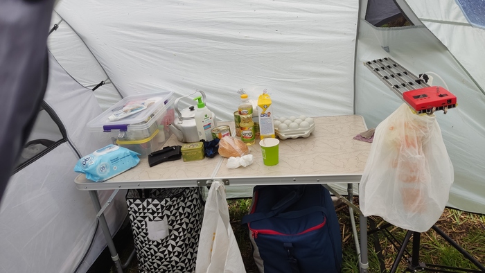 Поставили палатку. По поводу приготовления еды: тут кто во что горазд, но почти никто не использует вот это кострище для еды, привозят с собой грили. Мне было совсем лень тащить с собой гриль, да и «на костре» интереснее. Я так ещё по утрам яичницу с беконом жарил на сковородке.