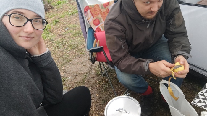 Река быстрая, по ней ходили баржи, одна из них проплывая мимо по громкоговорителю поздравила нас с первым градом, в этом момент я находилась в палатке, а друг помахал им в ответ, он устанавливал дополнительный тент.