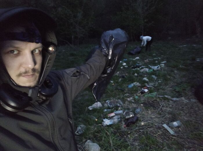 Мы не гордые поэтому собрали три пакета мусора, но не смогли больше ибо мусор был повсюду, а черные мешки закончились. Собирали уже в полной темноте, освещая самодельными лампами.