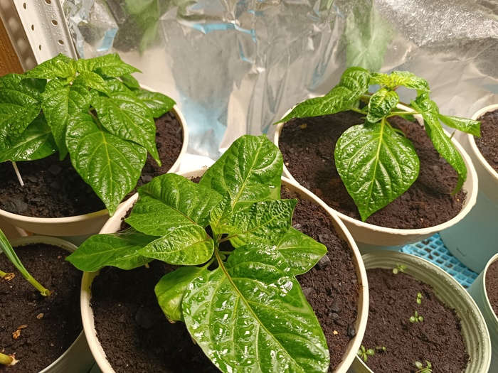 Сзади куста цветущая орхидея, жаль перец так красиво не цветёт.