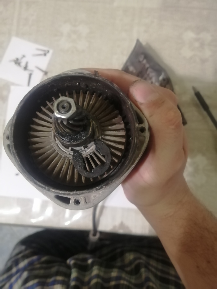 Как думаете, неужели мастер, устранив дефект, мешающий работе болгарки, после отказа от ремонта мог положить такой «сюрприз» чтобы разорвало вентилятор якоря, и болгарка вышла из строя?
