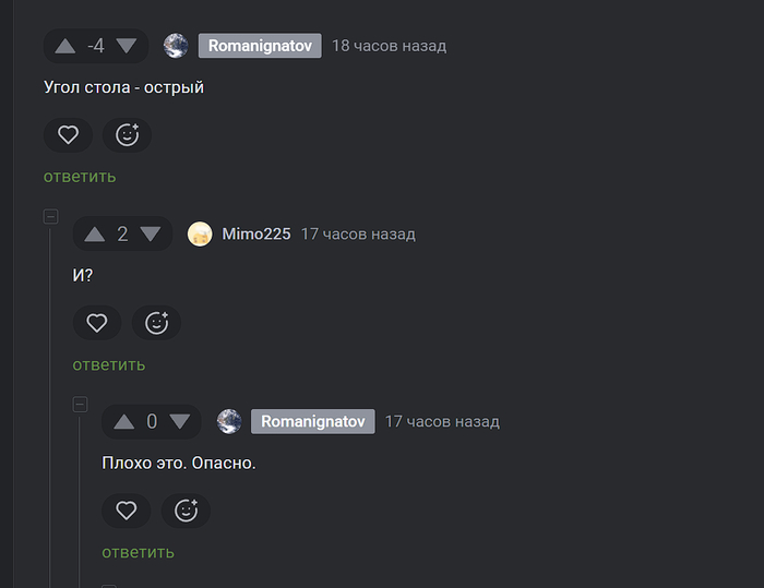 Угол стола - острый, опасен для детей. Дети могут столкнутся в процессе игры-беготни, и удариться об острый угол.