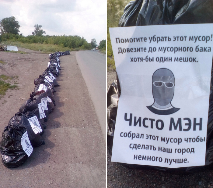 Очень удобно, когда идешь в лес, в пакет для мусора уже ничего не влезает, и тут же находишь еще один. Иронично, что на нем написано «сдайте меня на переработку».
