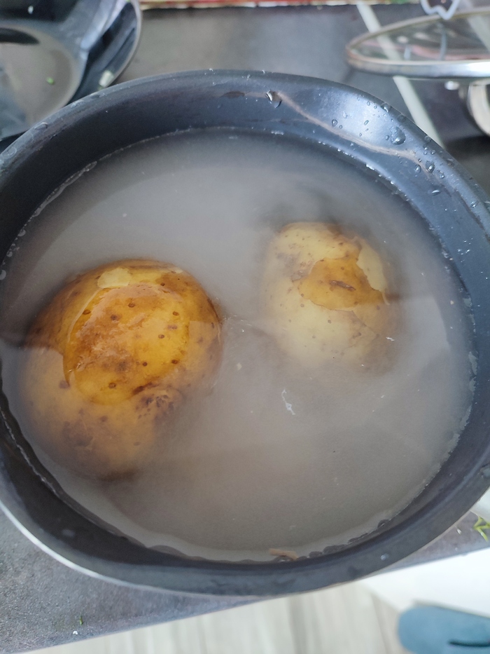 Так же расскажу лайфхак как варить картоху в мундире. Беру молодую картошку и добавляем очень много соли. Так чтобы она больше не растворялась. Дело в том что в кожуре картошку невозможно пересолить а много соли увеличит температуру воды и заберёт из картошки лишнюю влагу. Она получается как бы немного запечённая.