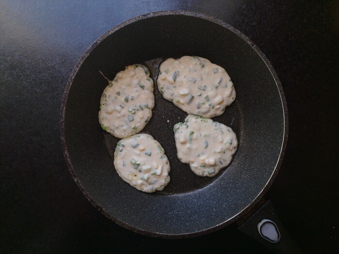 4. Выкладываем ложкой на разогретую сковороду с небольшим количеством масла и обжариваем на умеренном огне по 4 минутки с каждой стороны.