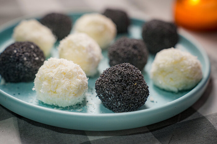 Десертный вариант я обваливаю в кокосовой стружке или в маке с лимонной цедрой.