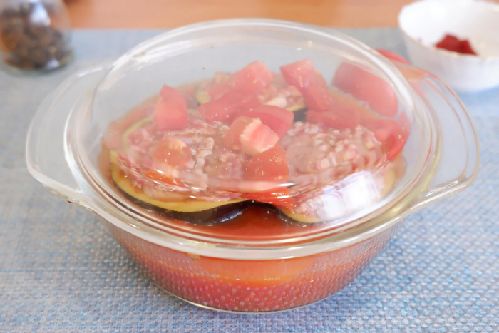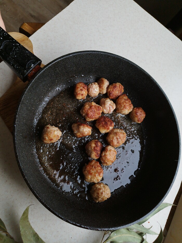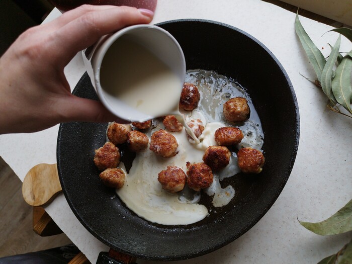 5. Остатки муки от панировки размешиваем в воде и заливаем этой смесью фрикадельки.