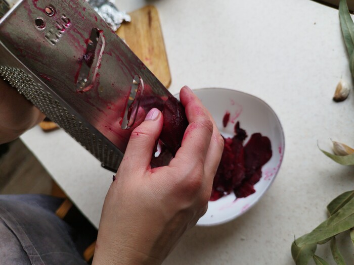 1. Моем свеклу, тыкает в неё вилкой пару раз, завораживает в фольгу и отправляем в духовку минут на 40 при 200-220 градусах.