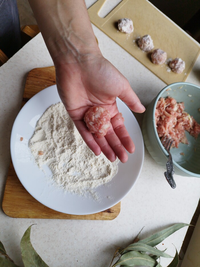 3. Формируем небольшие шарики из фарша, обваливаем в муке и обжариваем ра разогретом растительном масле.