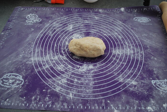 Замесим тесто и оставим под плёнкой на полтора часа. Пока тесто не поднимится.